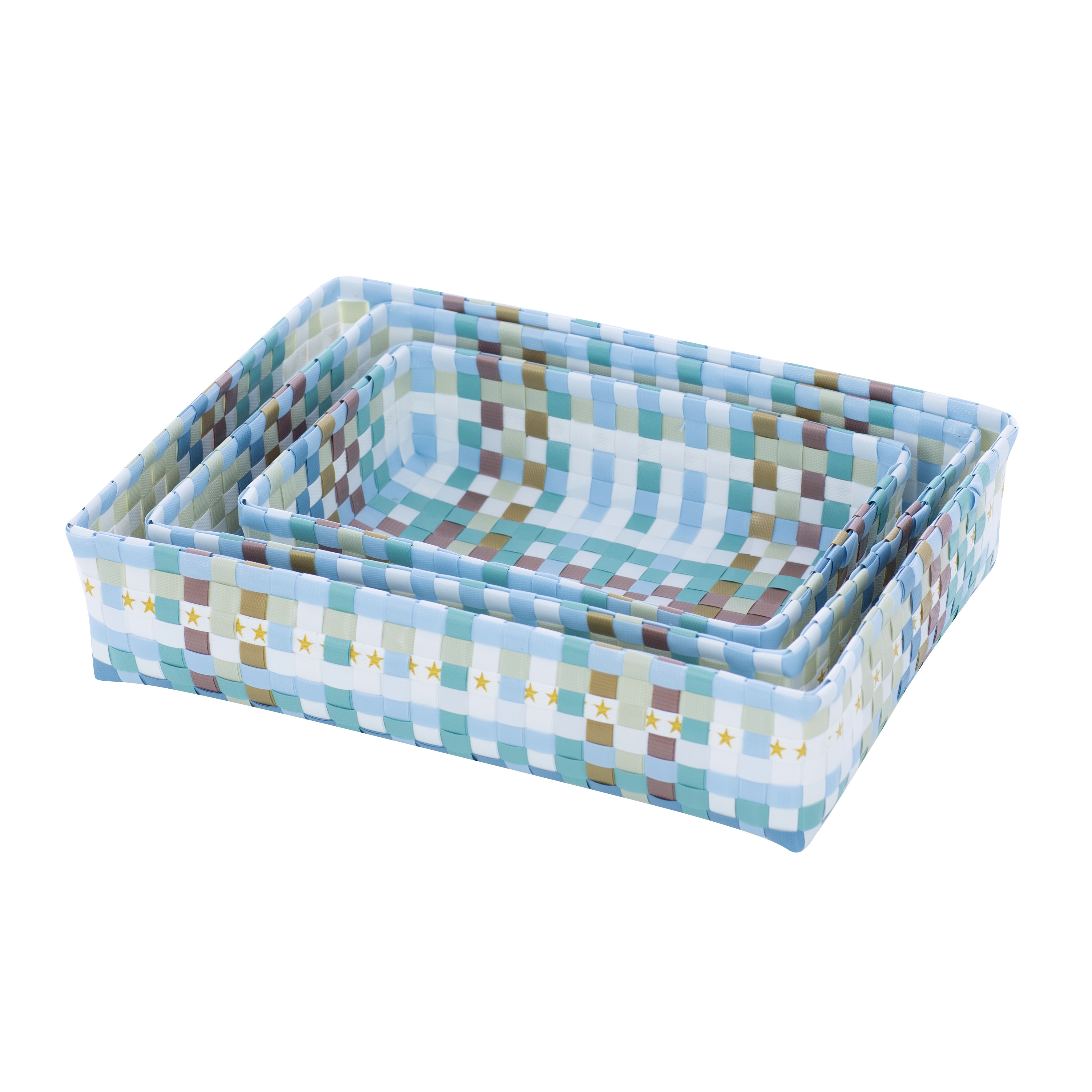 The three low baskets for organizing and storing all sorts of things are offered in a set of three. They are very versatile and can be used wonderfully, for example, as a storage basket for paper, as a fruit basket, bread basket, shelf in the hallway, in the bathroom or in the study.