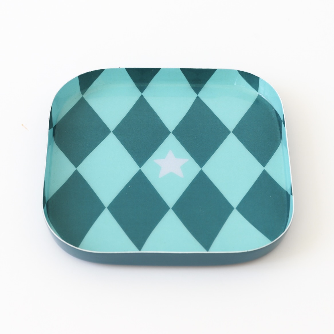 Sometimes a small detail is all it takes to create a mood. The enameled diamond-shaped tray, with its fresh blue-green tones and a star in the center, brings a clear, graphic accent to the table – cool and modern.