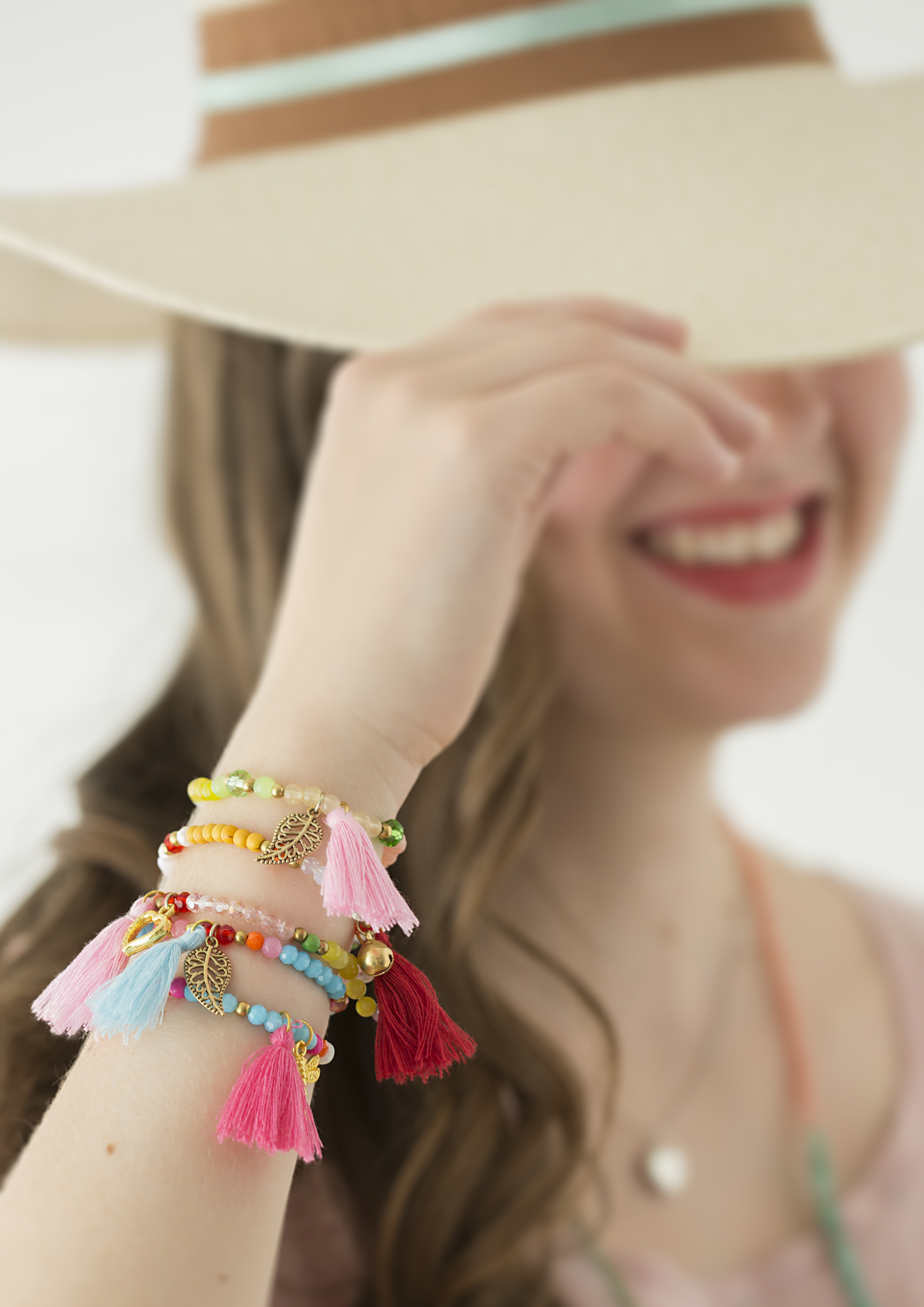 • Material: Perlen aus Glas und Kunststoff, Charms, Quaste
