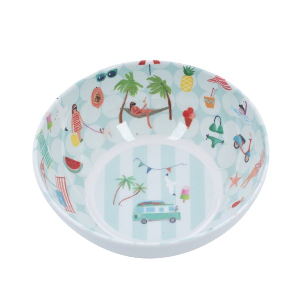 Lust auf ein Picknick à la France? Das Melamingeschirr Beach Life holt das Gefühl der französischen Atlantikküste mit Motiven wie Sonnenschirmen, Palmen, Eiscreme und süßen Campingbussen direkt zu dir nach Hause. Ideal für das Strand-Feeling beim Picknick oder deinem nächsten Essen! Und weil die Teller, Schalen, Tabletts und Löffel nicht nur schön leicht, sondern auch robust sind, besteht bei kleinen Missgeschicken keine Bruchgefahr.