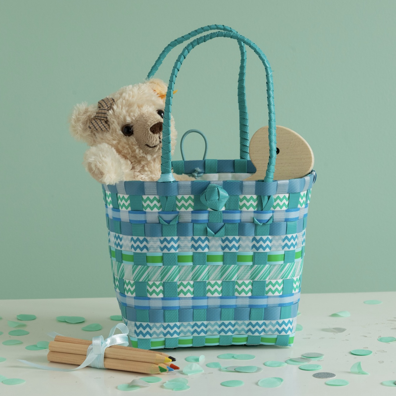Auch süß als Kindergartentasche oder Kitatasche. Die geflochtenen Spieltaschen sind robust, abwaschbar, leicht und hübsch.