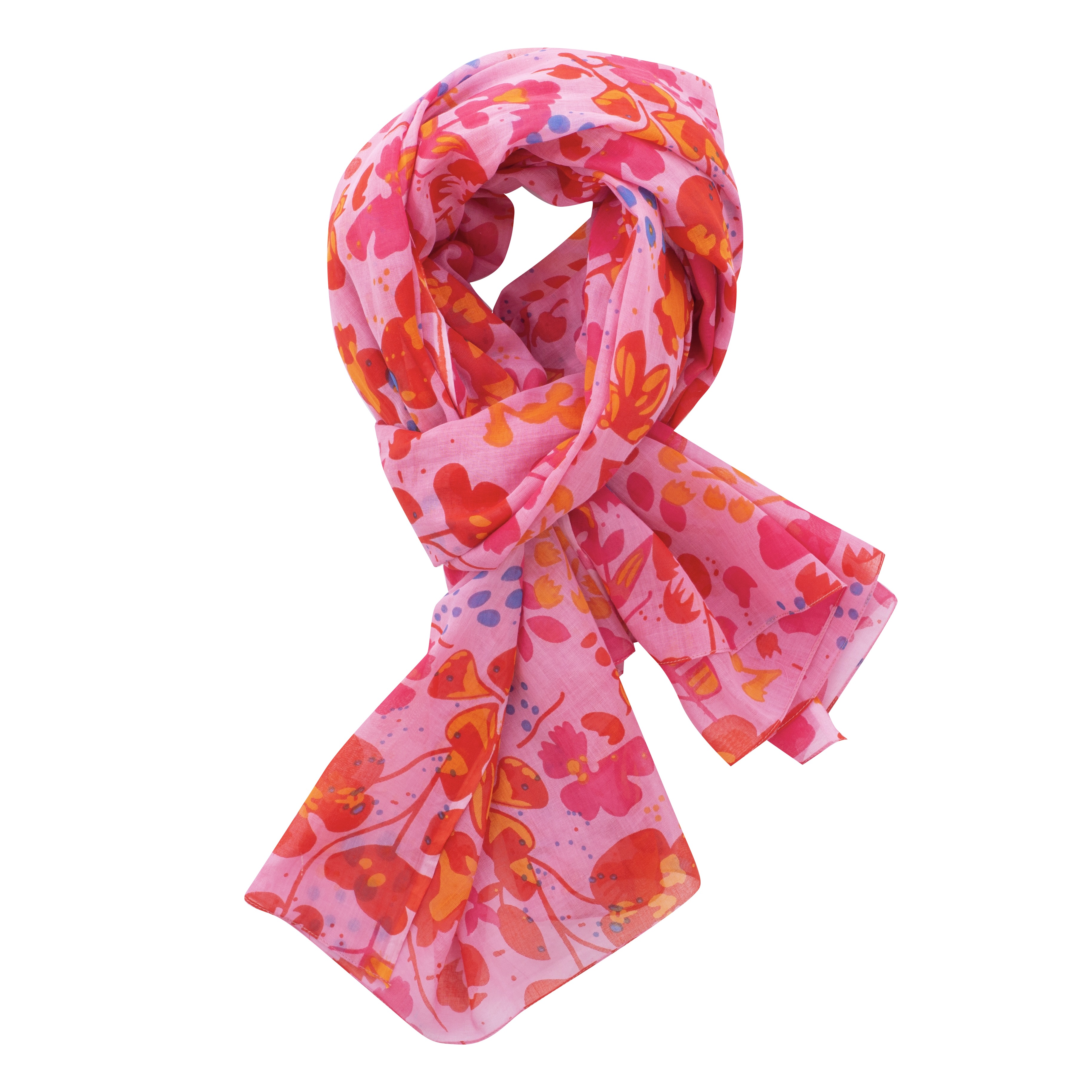 Hallo Sommer! Auf dem rosafarbenen Fond des Tuchs Viola leuchten die pinken Blüten besonders schön und zaubern uns ein Lächeln ins Gesicht. Tolle Ergänzung hierzu: Unsere Halskette Jacky, die mit ihrem charmanten Fächeranhänger die Blicke auf sich zieht. Ein tolles Mode-Accessoire, das jedes Sommeroutfit aufpeppt.